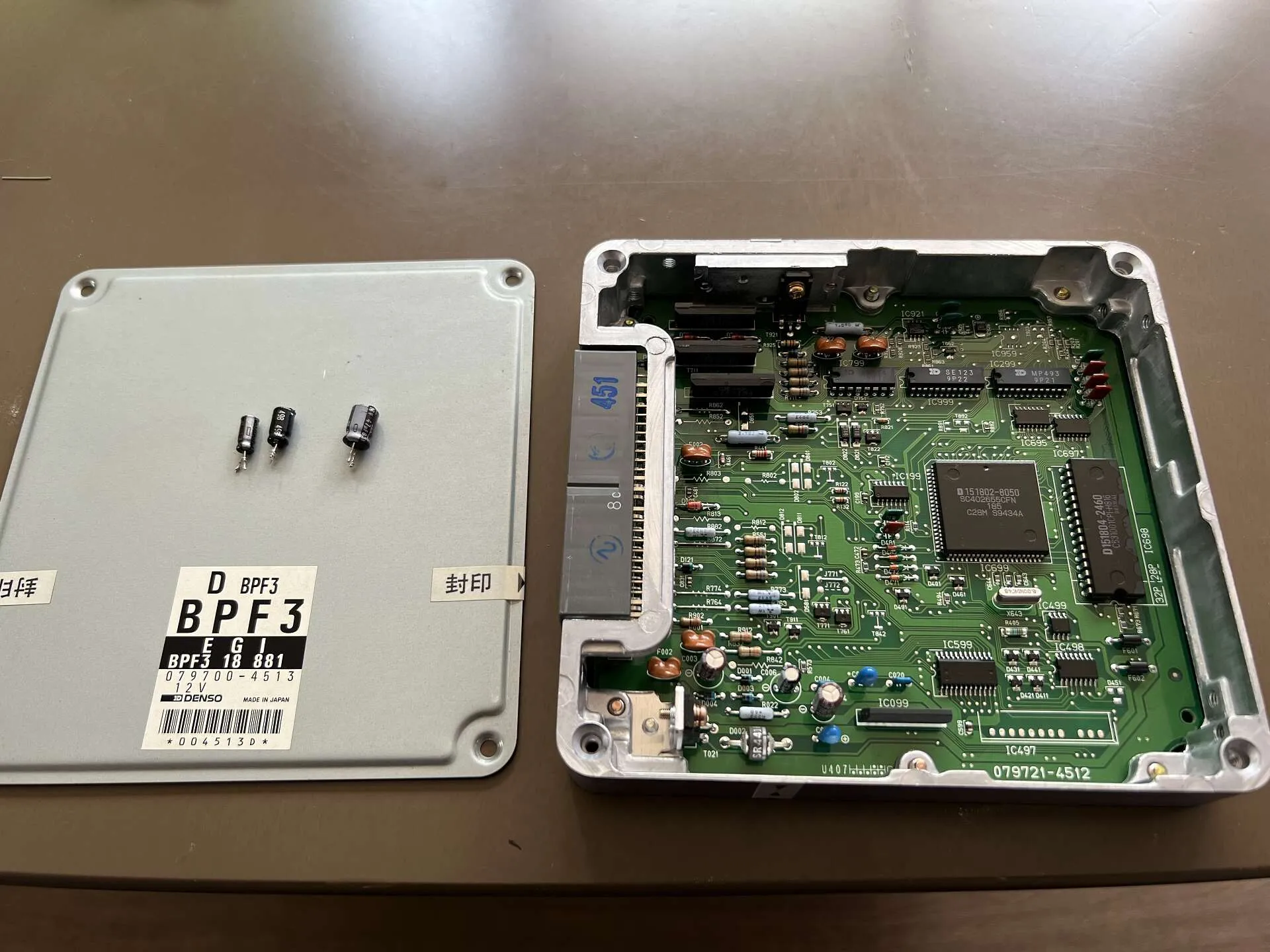 特にNAロードスターのSr1、Sr1.5は走行距離に関係なくエンジン不調の現象が出ていなくても必ず電解コンデンサから液漏れがおこります。身近な所でご説明いたしますと、長年使っていないリモコンの乾電池が錆びていた、液漏れしていた等と似ています。電解コンデンサの寿命は約10年と言われておりますので、NA6、NA8Sr1、Sr1.5、Sr2、NBを維持されているお客様は早急にリペア作業をお勧めいたします。液漏れが発覚した場合は、完全に修理が出来ないケースがございますのでご了承ください。